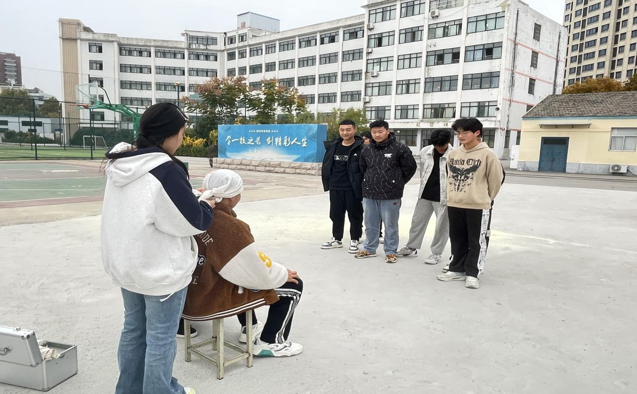 紧接着,演练进入了包扎演练环节。在学校老师的现场示范和指导下,学生们学习了如何快速、准确地为受伤部位进行包扎处理。通过实操练习,学生们不仅掌握了包扎的基本方法,还学会了在紧急情况下如何冷静应对,为自救互救打下了坚实的基础。