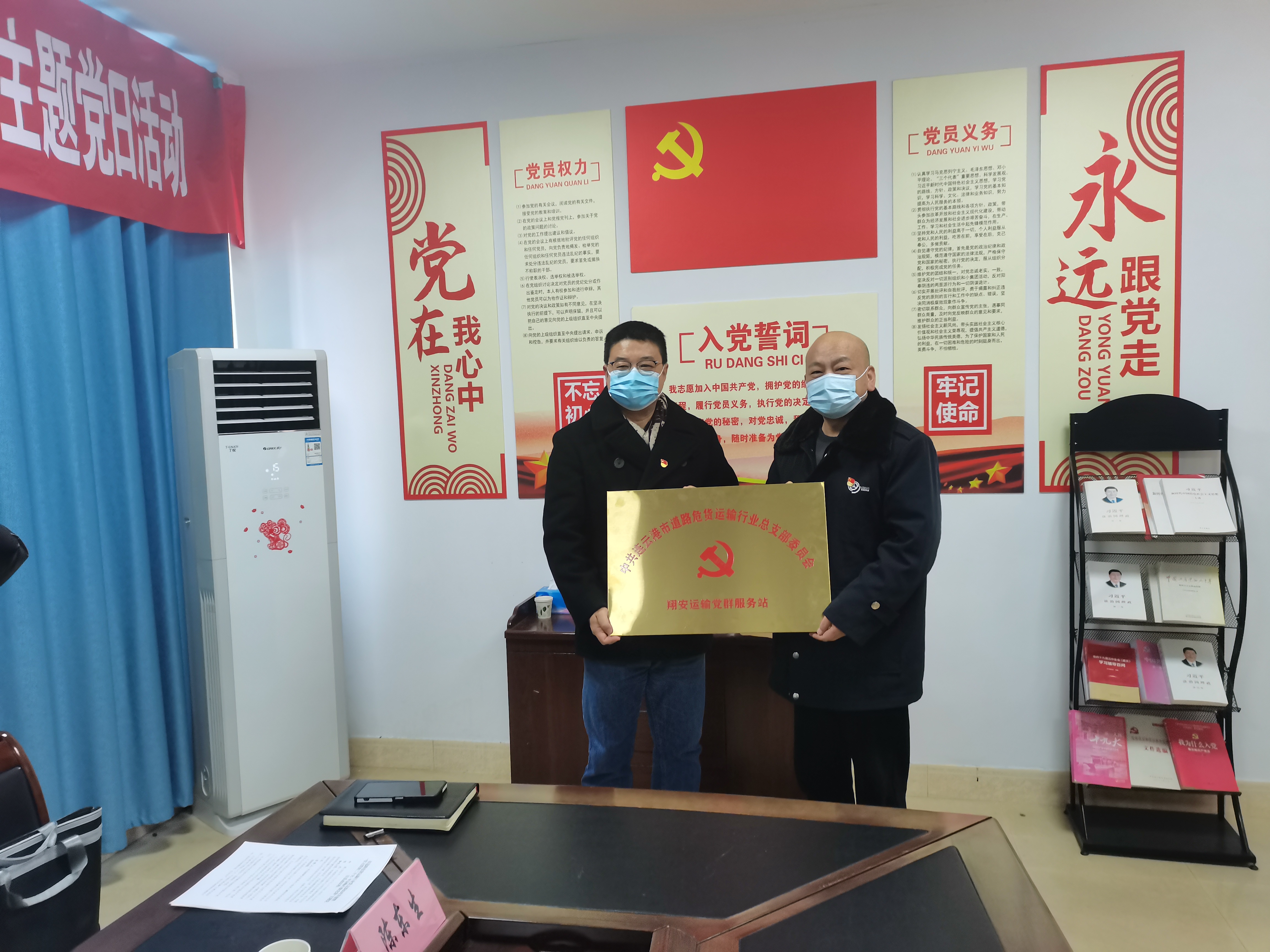 会上,两个党支部签订支部结对共建协议,为共享工作阵地资源、共做关心关爱行动等工作进一步深化联系、加强协作;同时现场向翔安公司党支部赠送了党的二十大报告学习辅导百问》、《危险货物道路运输法律法规政策文件汇编》等学习资料及业务书籍,并为翔安运输党群服务站授牌。