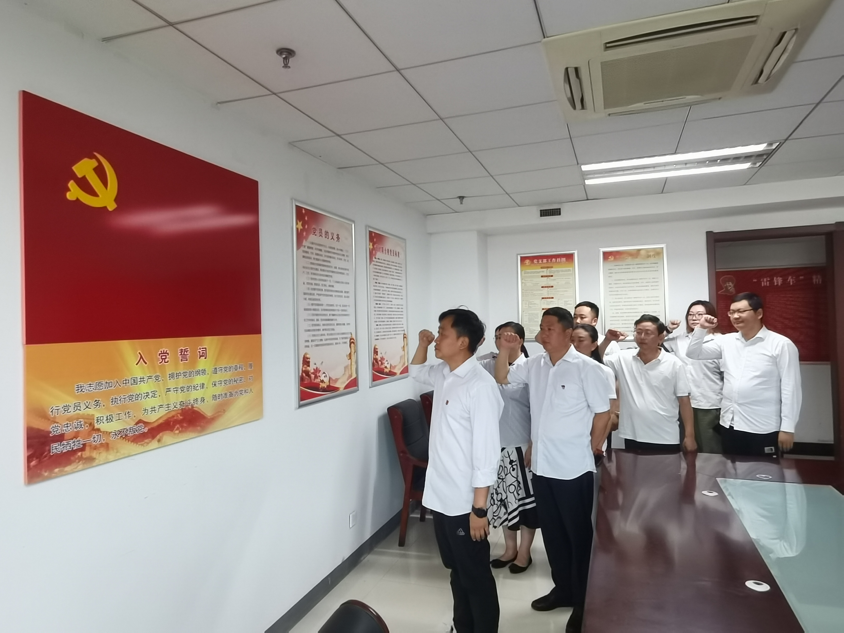 总站所属各党支部带领全体党员面对鲜艳的党旗,坚定地举右拳,庄严地向党旗宣誓,铮铮誓言,字字铿锵,表达了对党忠诚、永葆初心的决心,坚定了入党使命,为共产主义事业奋斗终身的信念。