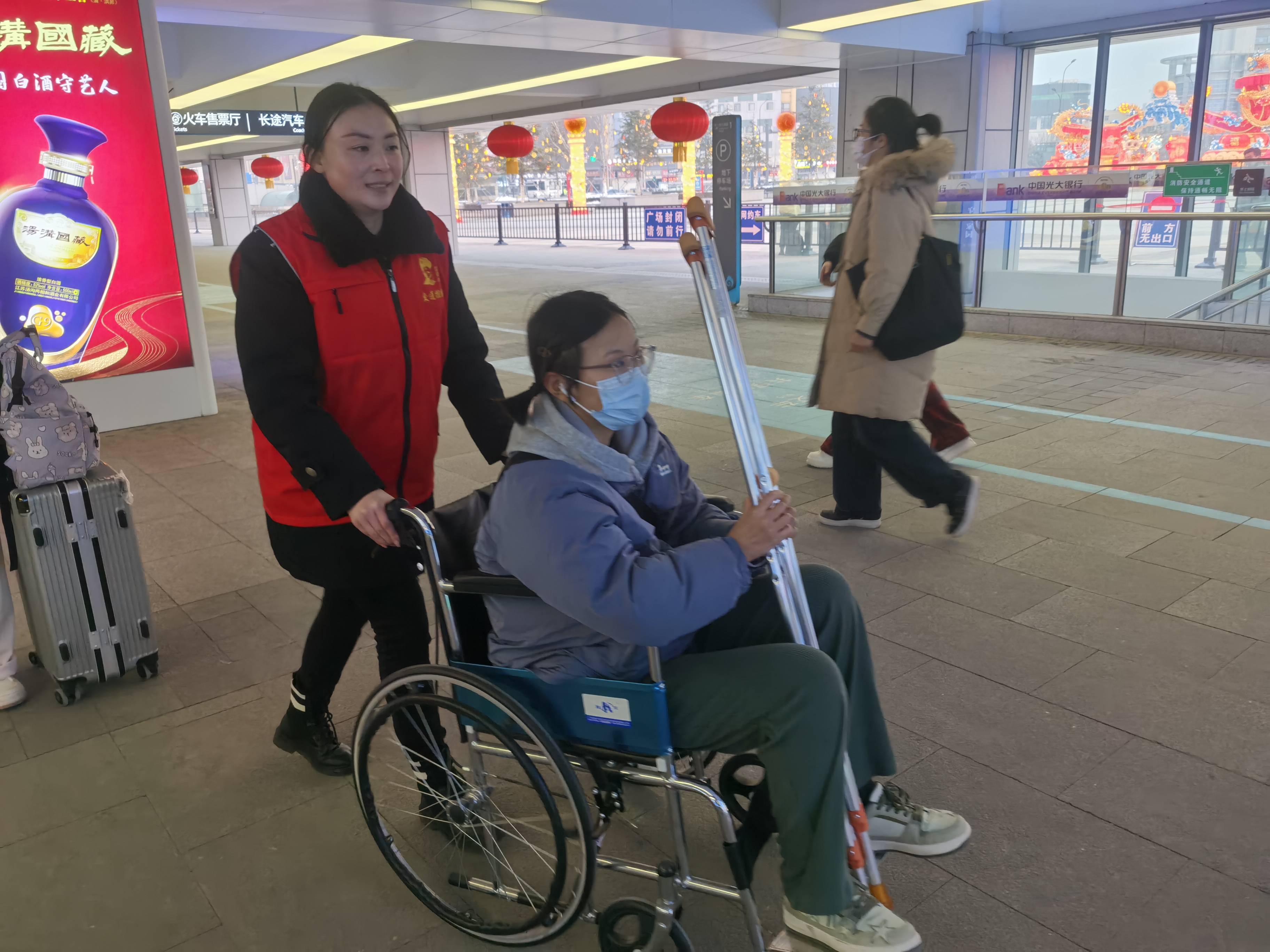 “雷锋车”手张黎说,“春运期间,高铁站出站口每天都会有不少行动不便的旅客。于是,我们就常备轮椅在服务台,一旦发现情况,立马派上用场。同时,为满足不同群体的多样化、个性化需求,‘雷锋车’驿站也提供问询咨询、失物招领、爱心药箱、爱心手推车、爱心雨伞、爱心热水等常态化服务措施。